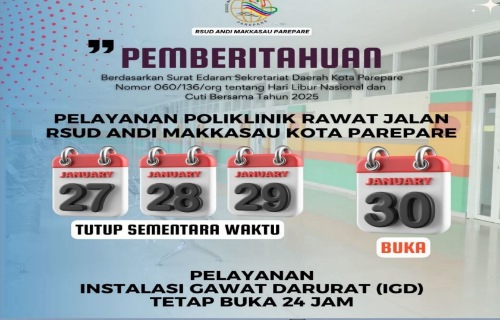 Terkait: Cuti bersamaLiburParepareRSUD Andi Makkasau