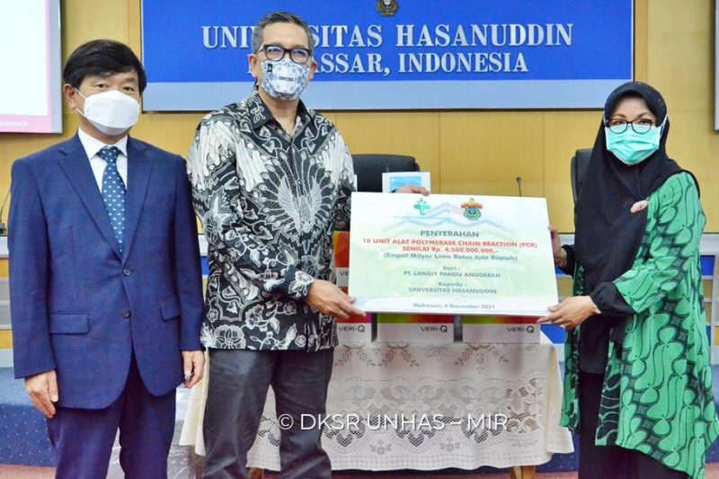 Rektor Unhas, Prof. Dr. Dwia Aries Tina Pulubuhu, M.A yang menyambut para penerima bantuan pada waktu itu menyampaikan terima kasih pada PT. Langit Pandu Anugerah yang jadi Mitra Unhas dalam pengadaan alat PCR ini.