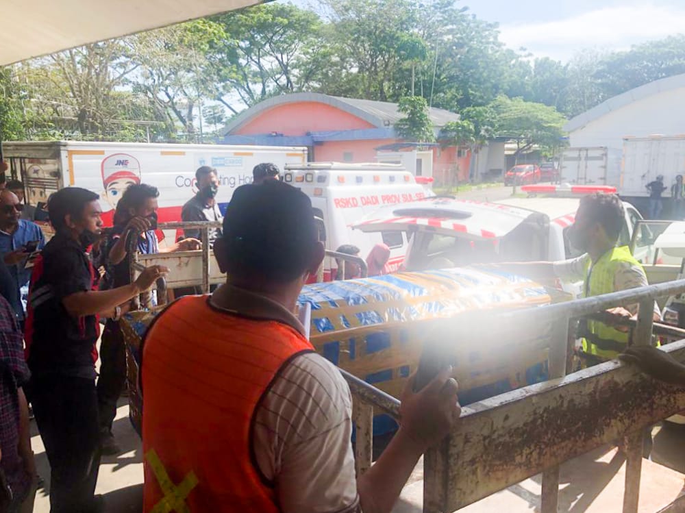 Jenazah dari tiga korban itu atas insiden ini sudah tiba di Bandara Internasional Sultan Hasanuddin, Minggu (17/7/2022).
