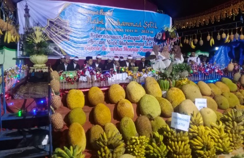 “Animo masyarakat begitu tinggi dalam rangka memperingati hari kelahiran nabi Muhammad SAW, sehingga seluruh hasil bumi dari kebun masyarakat dibawa untuk membuktikan kecintaan terhadap Nabi Muhammad, Saw,” ujarnya