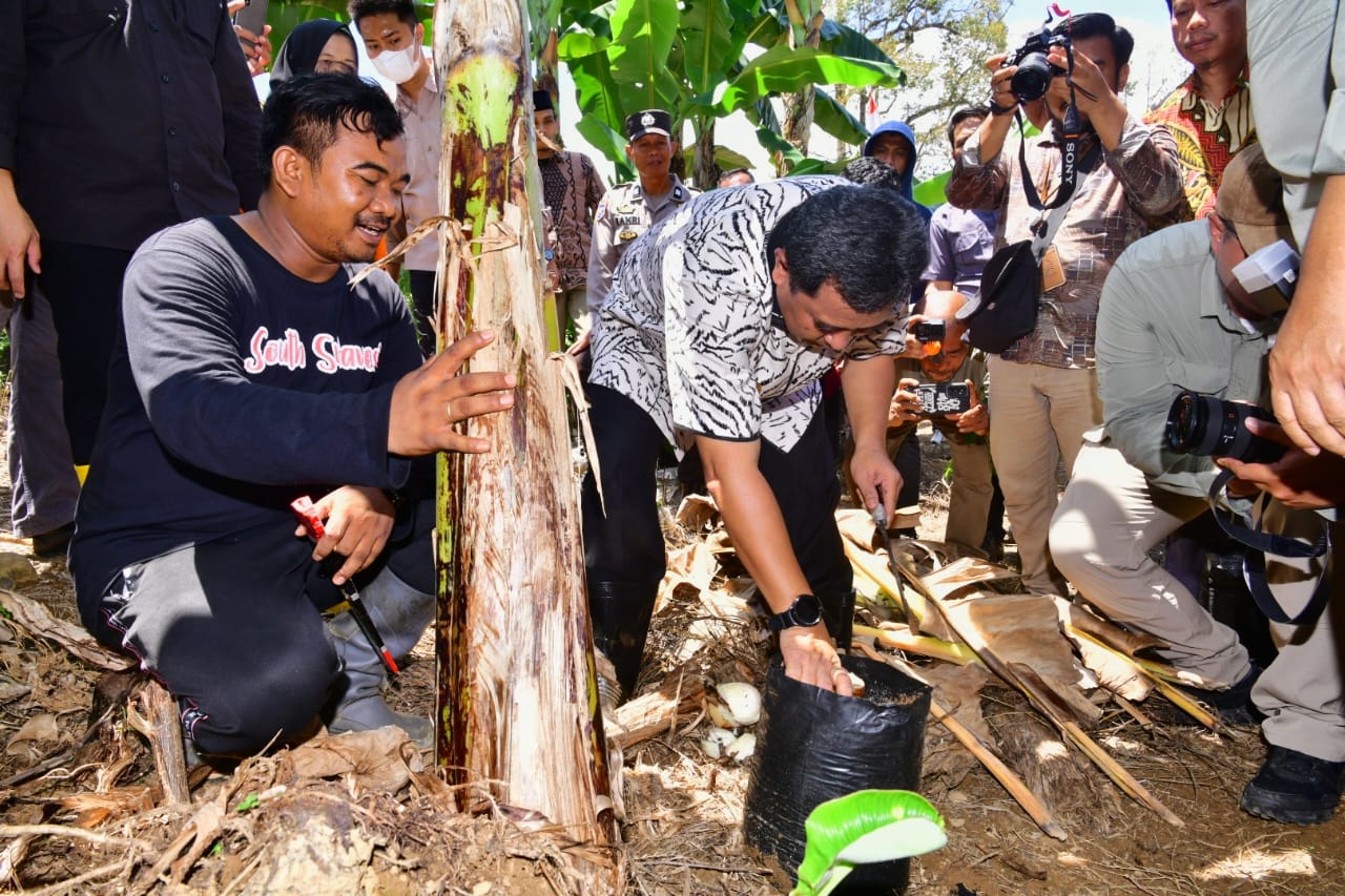PALOPO,PIJARNEWS.COM— Penjabat Gubernur Sulsel, Bahtiar Baharuddin, melakukan pencanangan budidaya pisang di Kota Palopo, Ahad (5/11/ 2023). Lokasinya di Kelurahan Peta, Kecamatan Sendana.