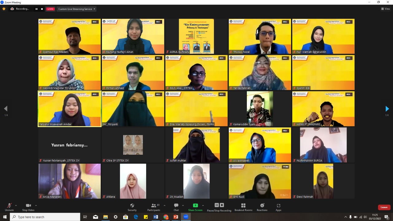 Webinar mengusung tema “Go Entrepreneur : Peluang dan Tantangan” peserta berasal dari kalangan pelajar, mahasiswa, guru, dosen, maupun kalangan umum.
