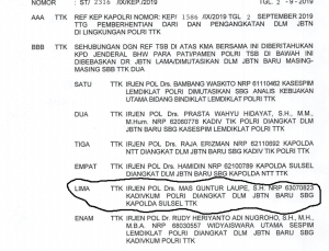 Mutasi tertuang dalam Surat Telegram Kapolri bernomor ST/2316/IX/KEP/2019 tertanggal 2 September 2019