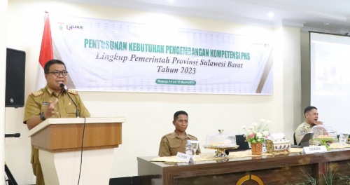 MAMUJU, PIJARNEWS.COM--Sekretaris Provinsi (Sekprov) Sulawesi Barat (Sulbar) Muhammad Idris, menghadiri Pembukaan Penyusunan Kebutuhan Pengembangan Kompetensi Pegawai Negeri Sipil (PNS) Lingkup Pemprov Sulbar Tahun 2023, di Hotel Grand Putra, Jalan Emmy Saelan, Selasa (14/3/2023).