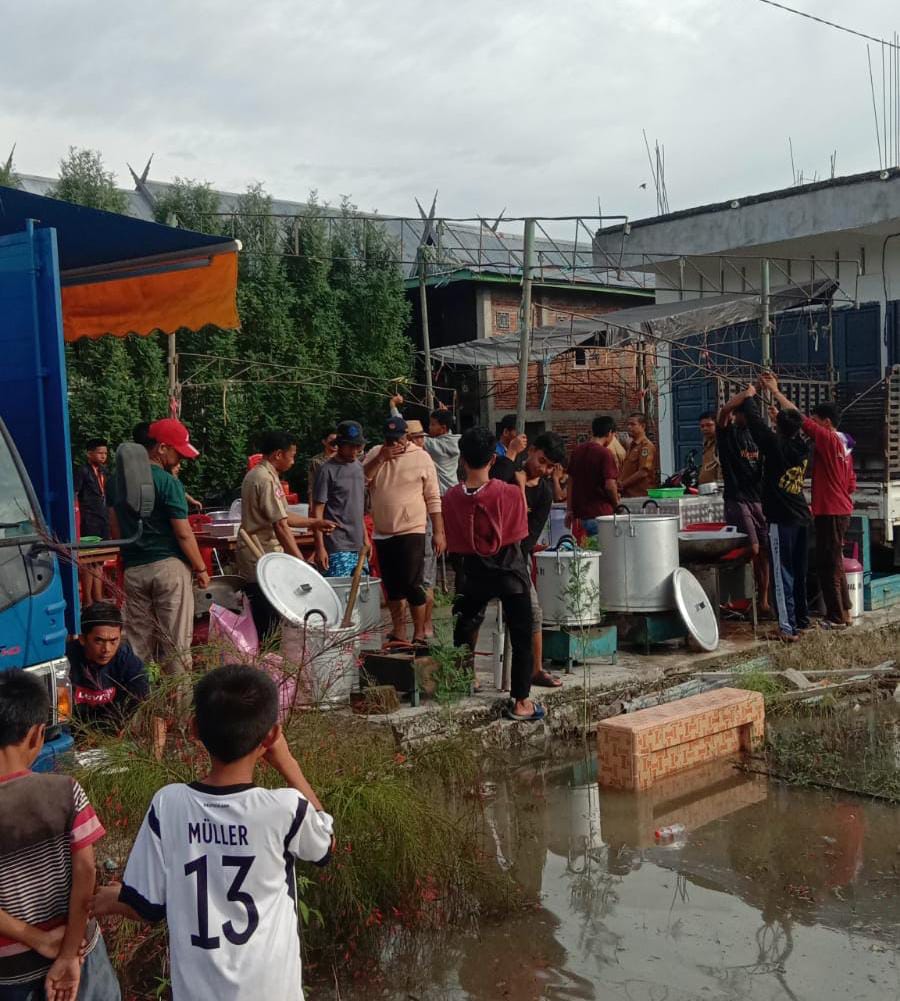 Dari pantauan Pijarnews.com, setelah salat isya makanan mulai dibagikan ke masyarakat menggunakan perahu karet dan beberapa alat bantu lainnya.