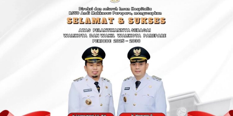 PAREPARE, PIJARNEWS.COM–Direksi dan seluruh jajaran Insan Hospitalia RSUD Andi Makkasau Parepare mengucapkan selamat dan sukses atas pelantikan H. Tasming Hamid sebagai Wali Kota Parepare dan H. Hermanto P. sebagai Wakil Wali Kota Parepare untuk periode 2025-2030.
