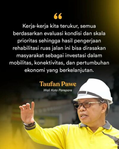 Wali Kota Parepare, Dr HM Taufan Pawe melalui akun media sosial pribadinya mengatakan, rehab jalan ini adalah kerja-kerja terukur dan berdasarkan skala prioritas.